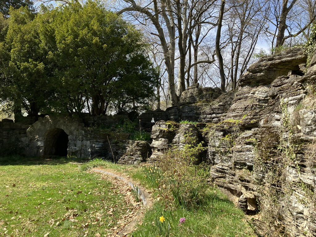 An arch indicates where the Gardener’s House’s back door and a flight of steps, one of which was discovered underground, would have been. Divine Word Missionaries donated a statue of St. Joseph, the patron saint of workers, families, travelers, and others who represent the diversity of individuals linked with Point Breeze, that presides over the native plants and French lavender growing nearby.