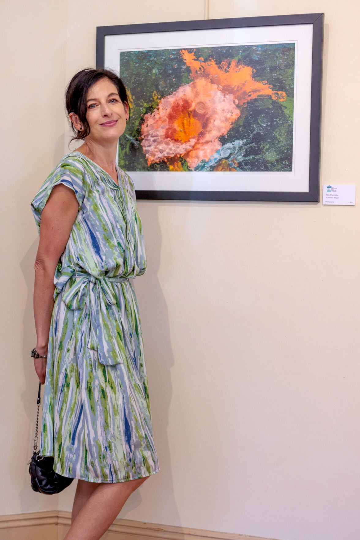 Self-trained in both media, Popinski draws inspiration from the natural world. “I lived by the Baltic Sea and was influenced by Jacques Cousteau documentaries and my dad’s love of scuba diving, which he shared with me and my brother,” she said in a 2024 interview with Community News Service. “Many of my paintings and photos have some element of water in them, and it’s because of the nostalgic feeling painting water gives me that I continue to include it in my works. To me, it is like playing with my memories. Even when I don’t paint water, the colors I use put me in that nostalgic head space.”