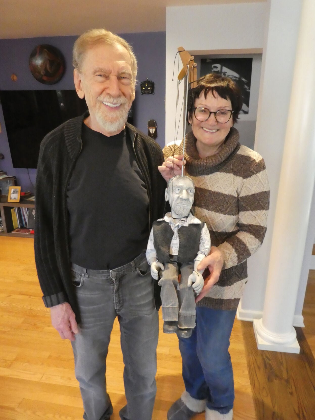 Her work on marionette portraits is a new passion discovered while traveling in Prague in 2018. “Puppets are definitely something that I have to plan,” in contrast to her wood sculptures, Gobernik noted in the 2023 article. “I cannot just follow ideas. I need to follow the proportions, or I won’t be able to make them play. There are more limitations.”