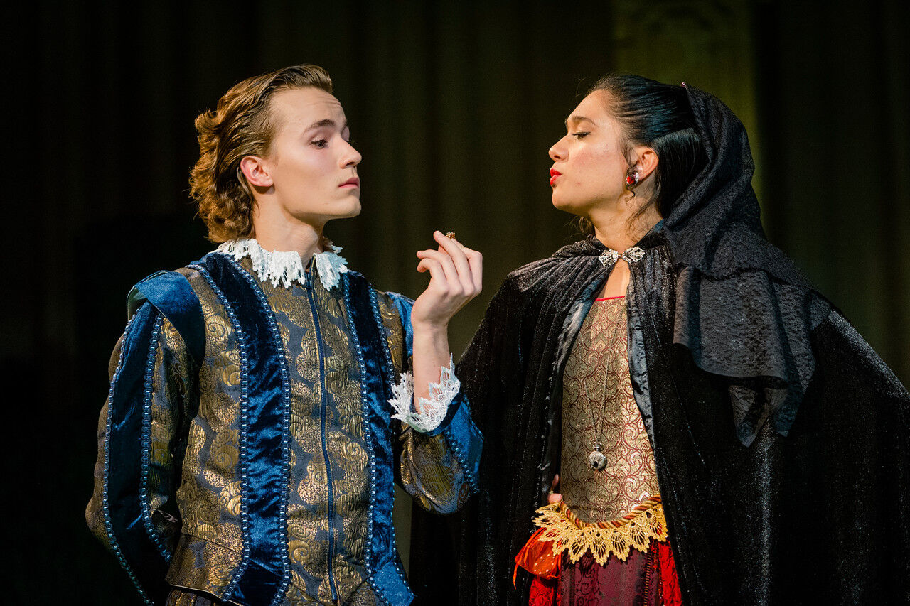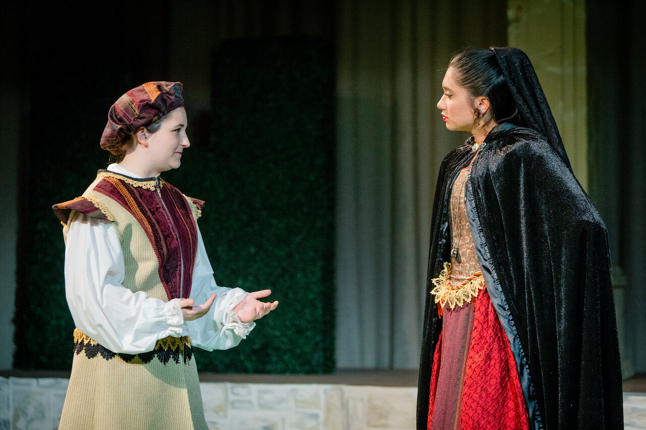 Neha Vasudevan (left) as the Sea Captain and Isabel Bannon as Viola.,